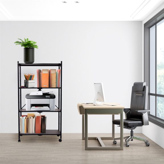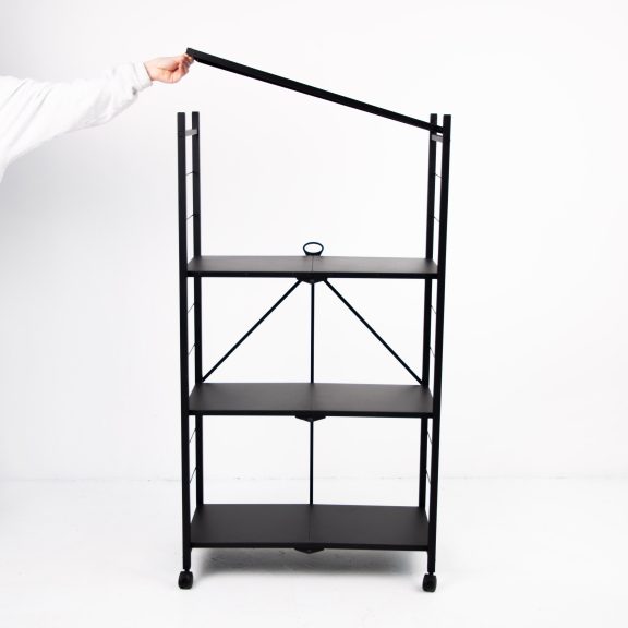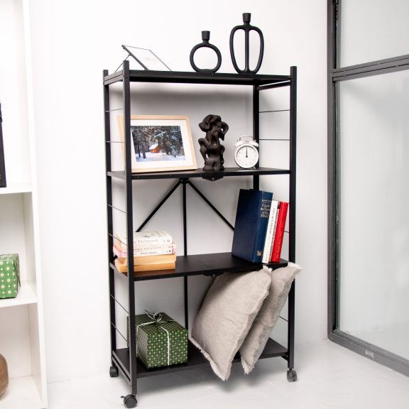 Полиці в стилі лофт допоможуть зберігати максимум речей на мінімальній площі. Стелаж має 4 полиці , що дозволяє розмістити багато необхідного. Полиця на колесах легко переміщається, що дозволяє легко прибирати або ж робити перестановку чи не щодня! Купити металевий пересувний стелаж – ідеальне рішення для тих, хто прагне до постійних оновлень інтер’єру. Цей вузький стелаж надзвичайно компактний у складеному вигляді і не займає багато місця. Він з легкістю може розміститись у ванній, на балконі, на кухні чи у вітальні.